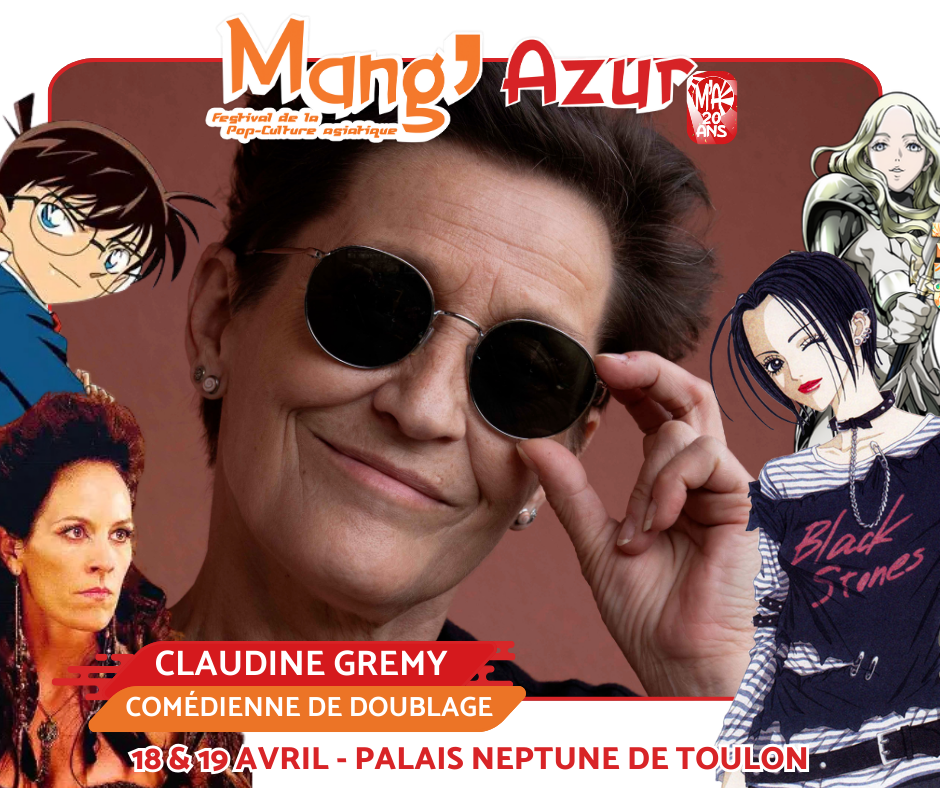 Que ce soit à travers Conan (les films Detective Conan), Anita (Once Uppon a time), Thérèse (Claymore) ou encore Gagaran (Overlord), notre nouvelle invitée la comédienne et directrice artistique CLAUDINE GRÉMY a plus d’une voix dans sa poche. Mais nous n’avons pas oublié les fans de NANA, car comme vous le savez, Claudine est aussi l’interprète de la mythique Nana Osaki. Retrouvez Claudine tout au long du week-end pour des séances de dédicaces, conférences et autres surprises !