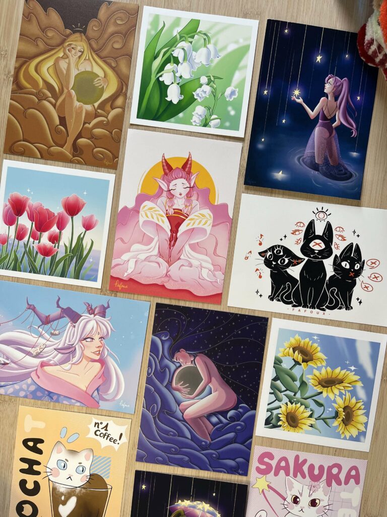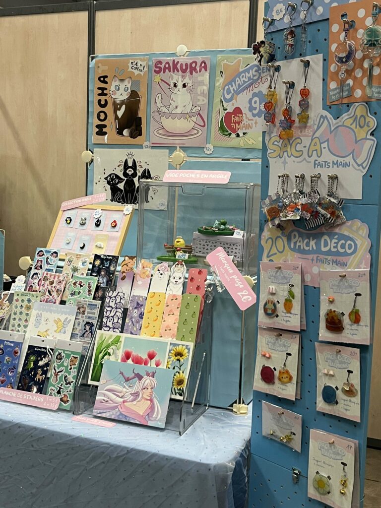 Je suis Fafoux, une artiste passionnée puisant mon inspiration des univers mignons et colorés. Mon stand regorge de créations faites main, pleines de douceur et de personnalité. Tu y découvriras des illustrations, des fan arts, des marque-pages, mais aussi des accessoires comme des porte-clés, des charms, des pins et toutes sortes de goodies mignons. J’y propose aussi des objets uniques en punch needle ainsi que des créations en argile originales. Chaque pièce est pensée pour apporter un peu de poésie et de couleur à ton quotidien.