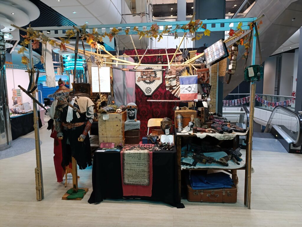 Le stand de l’Atelier des Flammes Noires est automatiquement décoré (accessoires, tissus.) et les personnes présentes sont en costumes (adaptés en fonction du thème du festival). L’atelier propose également, si l’espace le permet, l’installation d’un petit « atelier de voyage » afin de faire de la démonstration créative durant toute la durée du festival.