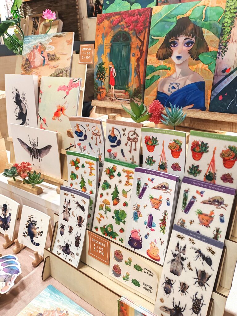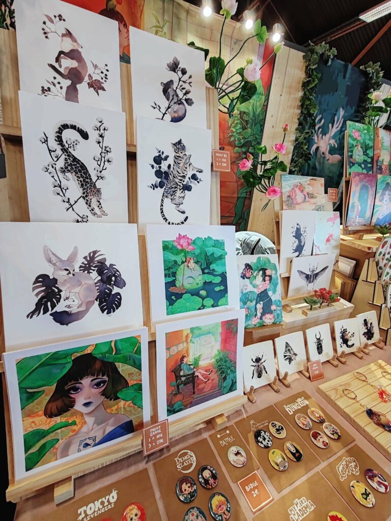 Sur son stand vous trouverez des prints de divers formats, des stickers et des petits goodies tels que badges et porte-clés.